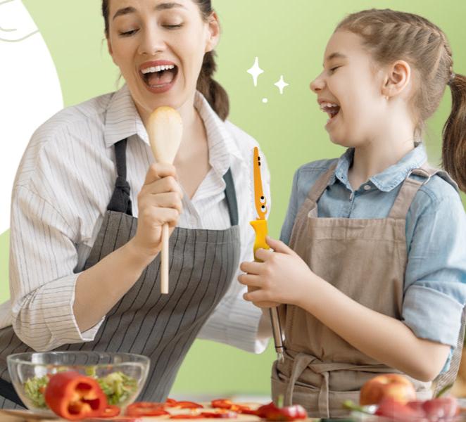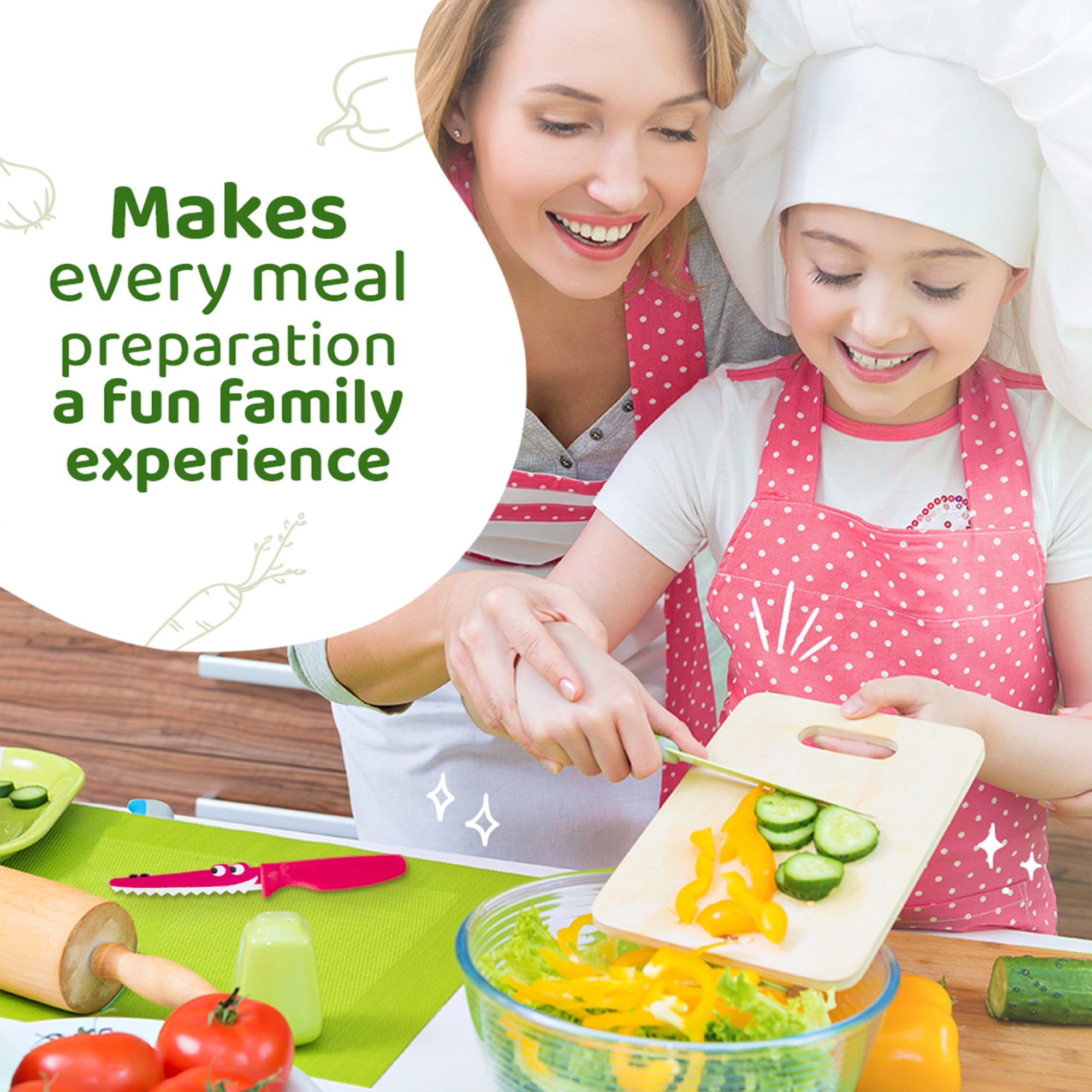 Unleash your child's inner chef with our toddler knives! thoughtfully designed with a kid-friendly blade to make slicing and dicing a breeze for tiny hands. This mini chef knife ensures kitchen adventures are not only fun but also free from concerns. Watch as your aspiring chefs transform ordinary ingredients into delightful mouth-watering creations. And, with its effortless slicing and dicing, you can let your child take the lead in crafting their own fruit salads and veggie platters for a fun and tasty exploration!